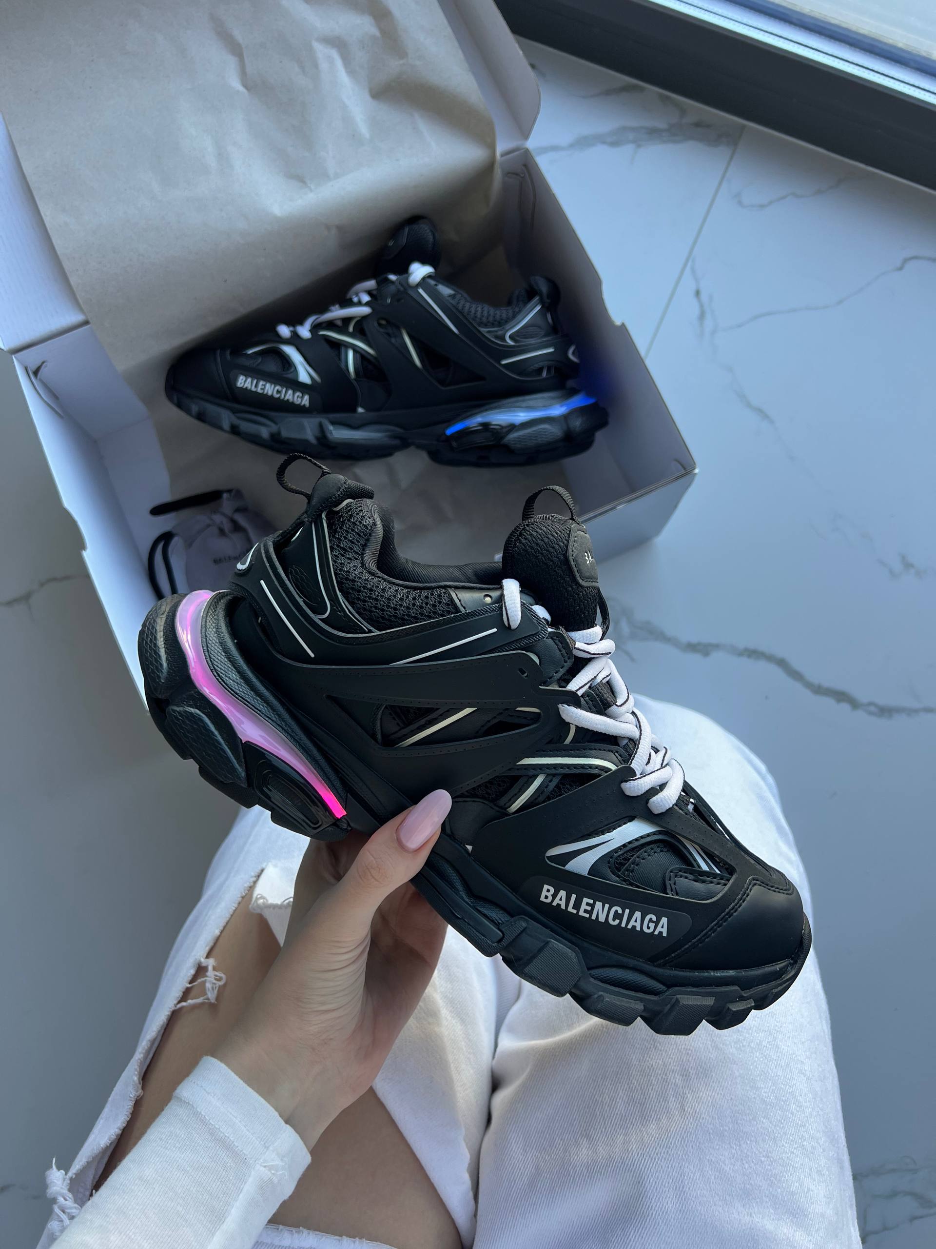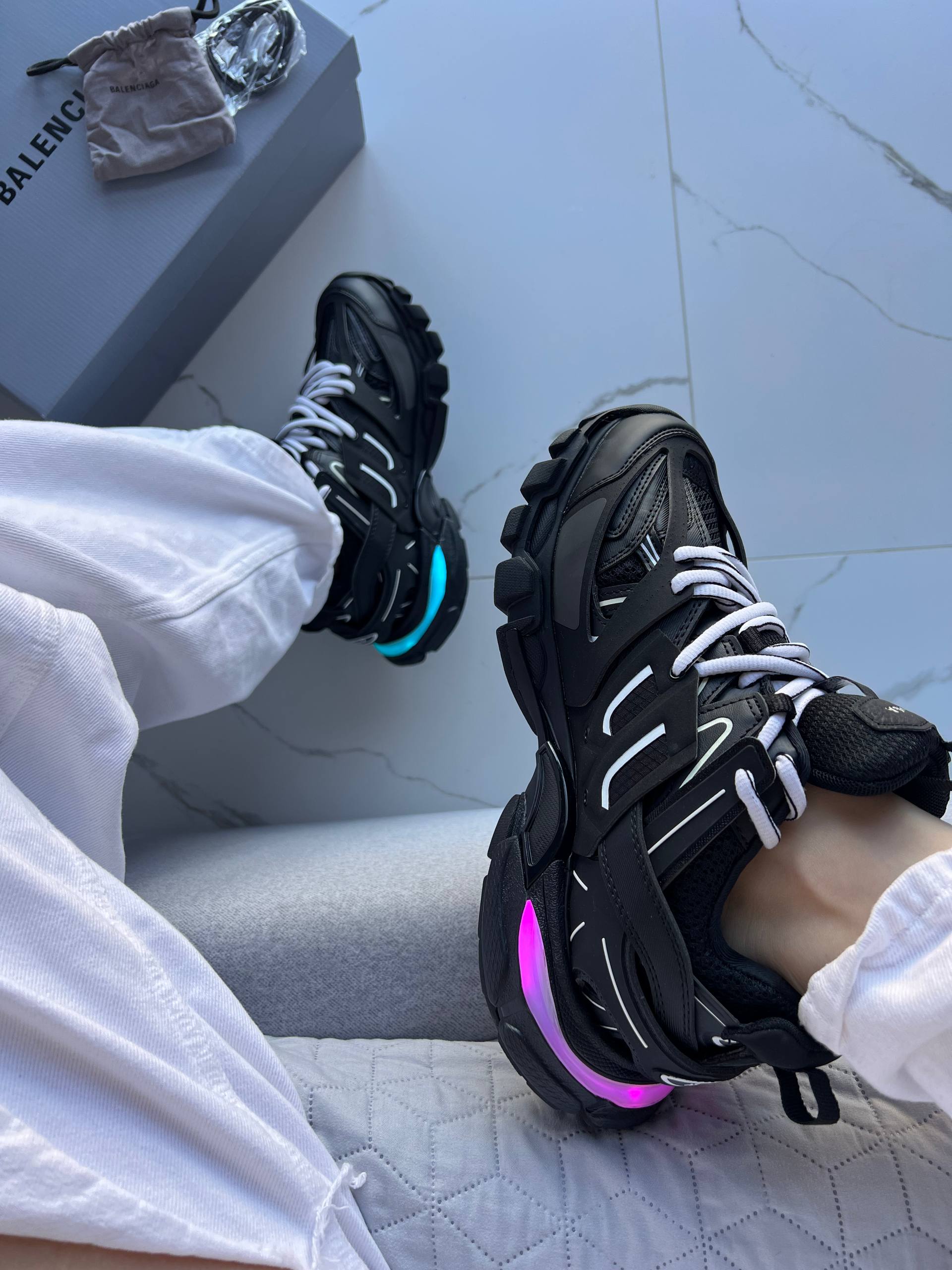 Balenciaga Track Black LED — футуристичні кросівки в чорному кольорі з багатошаровим дизайном і підсвіткою LED, що поєднують стиль і технологічність.